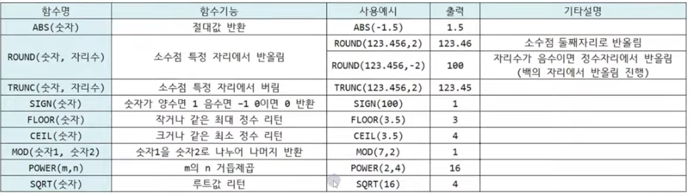 - 단일행 함수 : input 과 output 관계가 1 : 1