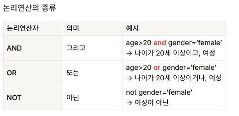 where 필터링 조건